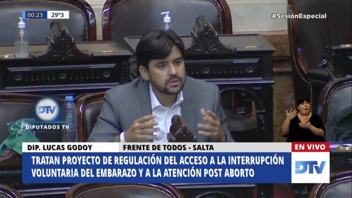A la medianoche, Lucas Godoy habló desde su banca en la Cámara de Diputados. Durante su discurso, aseguró que el aborto no puede ser penalizado y que se trata de una práctica que perjudica a todas las mujeres, más allá de las clases sociales.