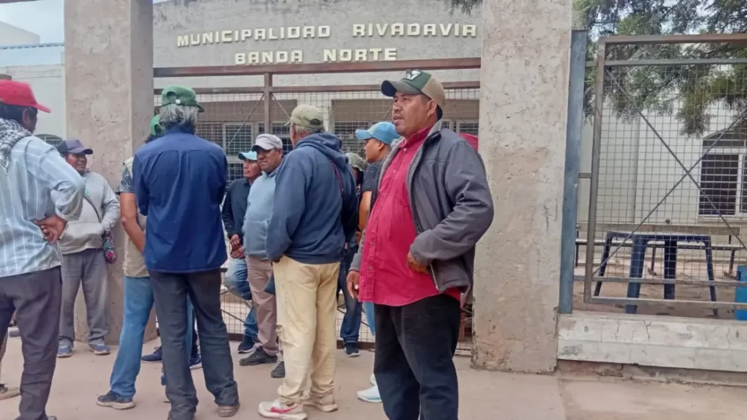 La municipalidad de Morillo fue tomada este miércoles por trabajadores pertenecientes a comunidades originarias de la zona. Exigen que se cumplan los pagos atrasados y que se actualicen los montos, ya que cobran 10 mil pesos por semana por labores de limpieza urbana.