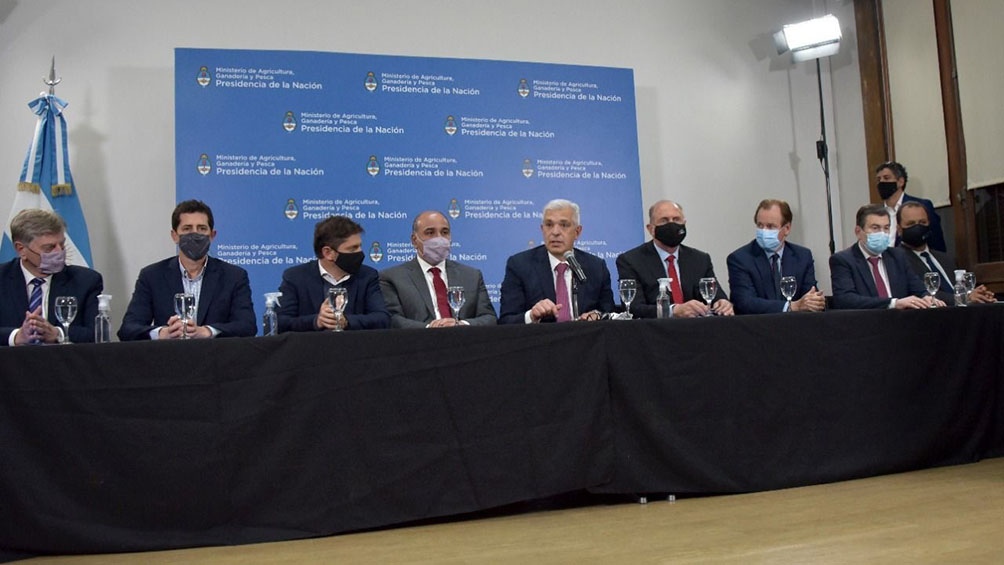 La decisión se tomó luego de la reunión mantenida entre el ministro de Agricultura, el jefe de Gabinete, gobernadores de cinco provincias y los representantes de la Mesa de Enlace.