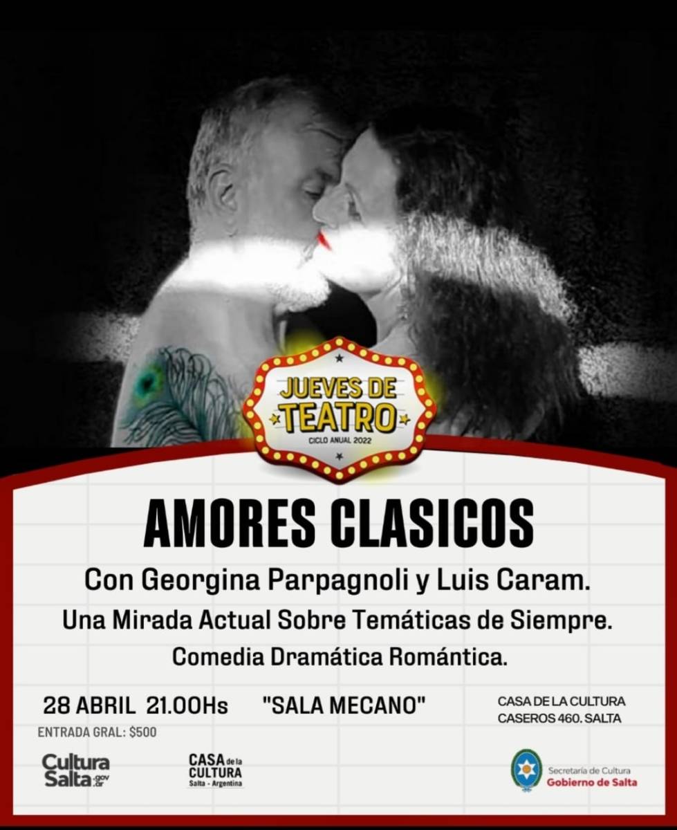 El 28 de abril a las 21.00 en Sala Mecano de Casa de la Cultura (Caseros 460), presentarán la obra «Amores clásicos». Según indicaron desde la Secretaría de Cultura, se trata de una propuesta teatral que conjuga textos clásicos con un montaje contemporáneo. Para ello toman las obras “La Fierecilla Domada” y “Othello” de William Shakespeare; “La Gaviota” de Anton Chejov; “Bodas de Sangre” de Federico García Lorca y “Cyrano de Bergerac” de Edmond Rostand.