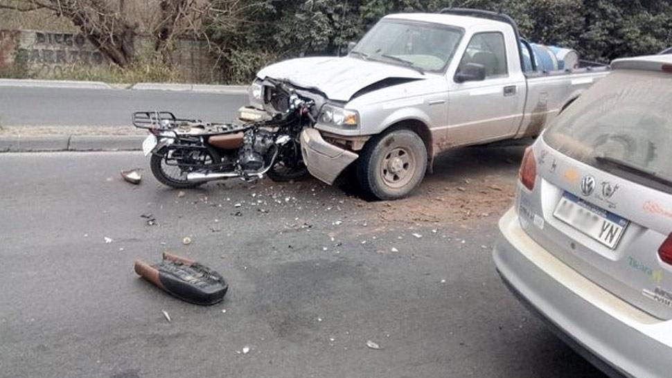 El siniestro se produjo esta mañana. La moto quedó incrustada en la camioneta y su conductor tirado en el asfalto.