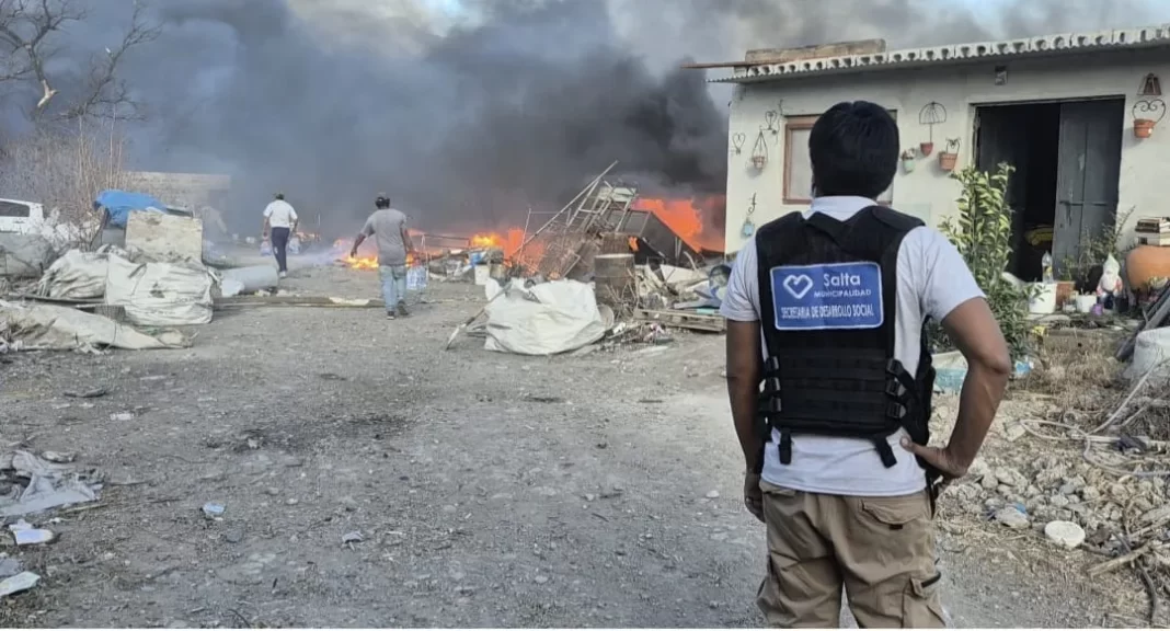 Equipos de la Municipalidad de Salta se encuentran trabajando a destajo para sofocar los incendios en distintos puntos de la ciudad, que fueron ocasionados por el fuerte viento que azota a la ciudad durante la jornada de hoy, viernes 1° de agosto.