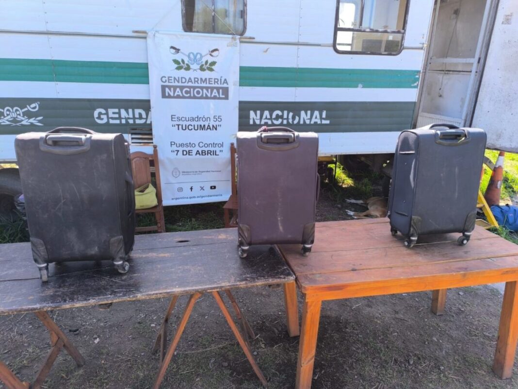 Tres pasajeros bolivianos escondían la droga en dobles fondos de valijas. Gendarmería los interceptó en un control sobre Ruta Nacional 34.
