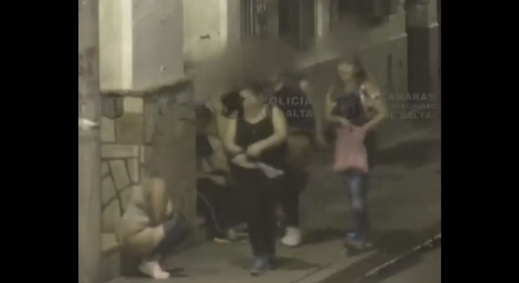 Las imágenes compartidas por la Fanpage del Ministerio de Seguridad de la Provincia de Salta muestran a un grupo de mujeres, aparentemente alcoholizadas, que circulaban por avenida San Martín, en horas de la noche.