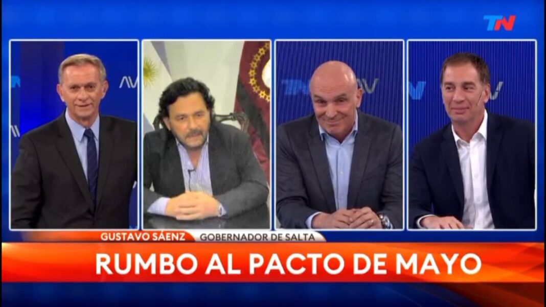 En la entrevista se habló de la convocatoria de Milei a los gobernadores, conocida como Pacto de Mayo, que a Sáenz le parecía conducente. En esos días, el diario La Nación publicó una nota al respecto donde citó al gobernador respecto de la convocatoria al diálogo: “Es el mejor camino que se ha elegido”, evaluaba. “Lo que tenemos que buscar es la Argentina del encuentro y el federalismo. Pero las autopistas terminan en Córdoba… desde Santiago del Estero hasta Salta y Jujuy son las rutas de la muerte. Tenemos que pagar hasta tres veces más la luz y el gas… Comparemos la factura de la luz del más pobre de Salta y el que vive en Puerto Madero. No es justo”, decía Sáenz en TN.