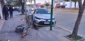 Conductor ebrio tumbó un poste en el macrocentro salteño
