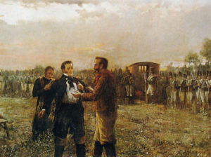 Lavalle hizo justamente eso y le fue a pedir a San Martín que continúe la tarea que él había comenzado. San Martín no baja. Lavalle sí y se hunde en las contiendas ordenando arrasar la campaña de Buenos Aires, cazar indios y federales a quienes ata de las bocas de los cañones para luego hacer fuego. Lavalle había sido un gran militar del Ejército Libertador, famoso por sus cargas de caballería, pero termina como policía de la guerra sucia.