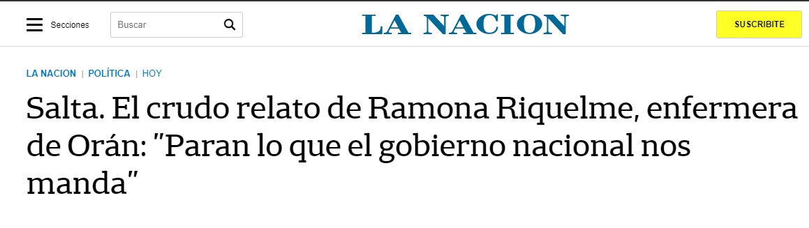 Las palabras de la enfermera Ramona Riquelme impactaron en el diario La Nación.