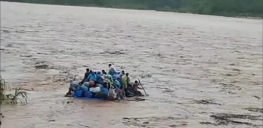 La escena fue grabada desde la ciudad boliviana de Bermejo. Más de 20 personas desafían a la naturaleza y a la pandemia en precarios “gomones” para llegar a la localidad salteña de Aguas Blancas.