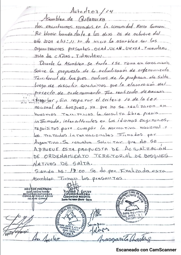 Cientos de comunidades, organizaciones, instituciones y ciudadanos solicitaron a los legisladores de Salta que NO voten el proyecto de actualización de Bosques Nativos remitido por el ejecutivo provincial al parlamento salteño. Los destinatarios del escrito fueron el presidente de la Cámara de Diputados, Esteban Amat; el titular de la Cámara Alta provincial, Antonio Marocco; el presidente de la Comisión de Minería y Recursos Naturales del senado, Miguel Calabró; y su par de Agricultura y Ganadería, Walter Wayar;