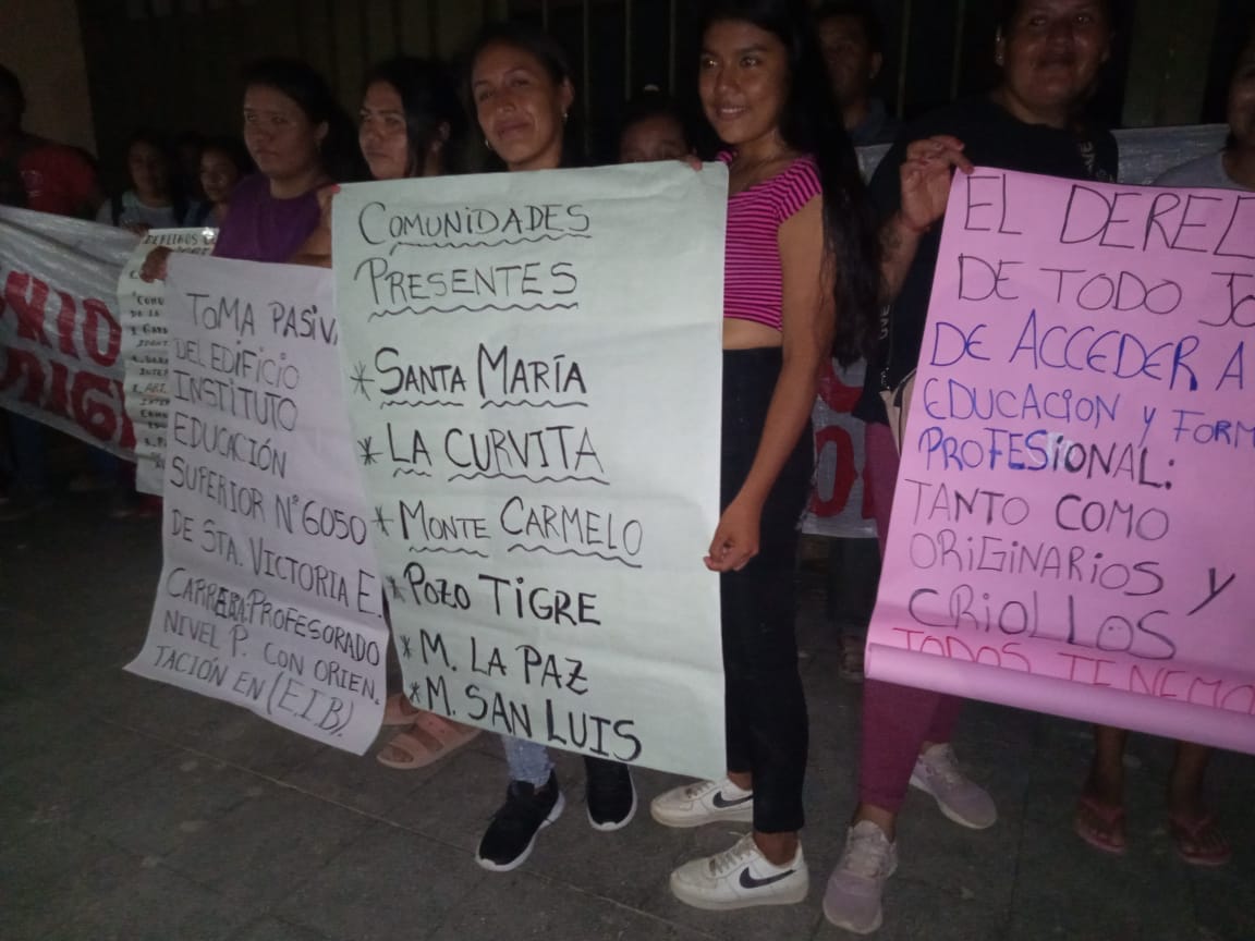 En el texto se informaba también que “numerosos estudiantes y autoridades comunitarias, realizaron una toma pacífica” solicitando que «se garantice el acceso a jóvenes de pueblos originarios, que se ven impedidos de estudiar en el nuevo Profesorado de Educación Primaria con Orientación en Educación Intercultural Bilingüe.