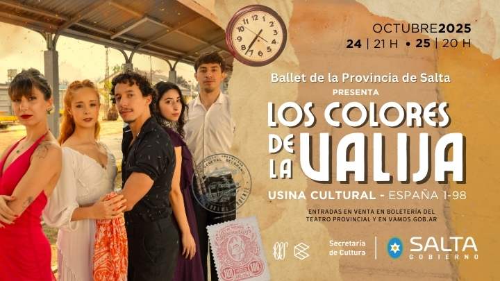 El Ballet de la Provincia de Salta presentará «Los colores de la valija» los días 24 y 25 de octubre en la Usina Cultural. La función del viernes 24 comenzará a las 21.00, mientras que la del sábado 25 será a las 20.00. El valor de la entrada general es de $6.000.
