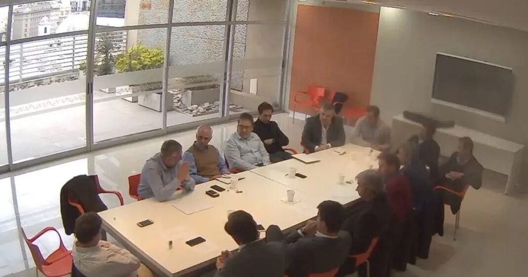 La información fue hallada por la AFI en videos grabados durante el encuentro en una sala del Banco Provincia de La Plata y forma parte de la denuncia presentada este lunes por la mañana por la interventora Caamaño ante la justicia federal de La Plata, para que el juez realice una investigación por presunta comisión de un grave delito de acción pública.