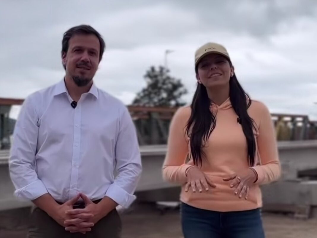 La senadora nacional aprovechó la colocación de vigas del puente sobre el río Vaqueros para recorrer las obras y adjudicársela al gobierno nacional.