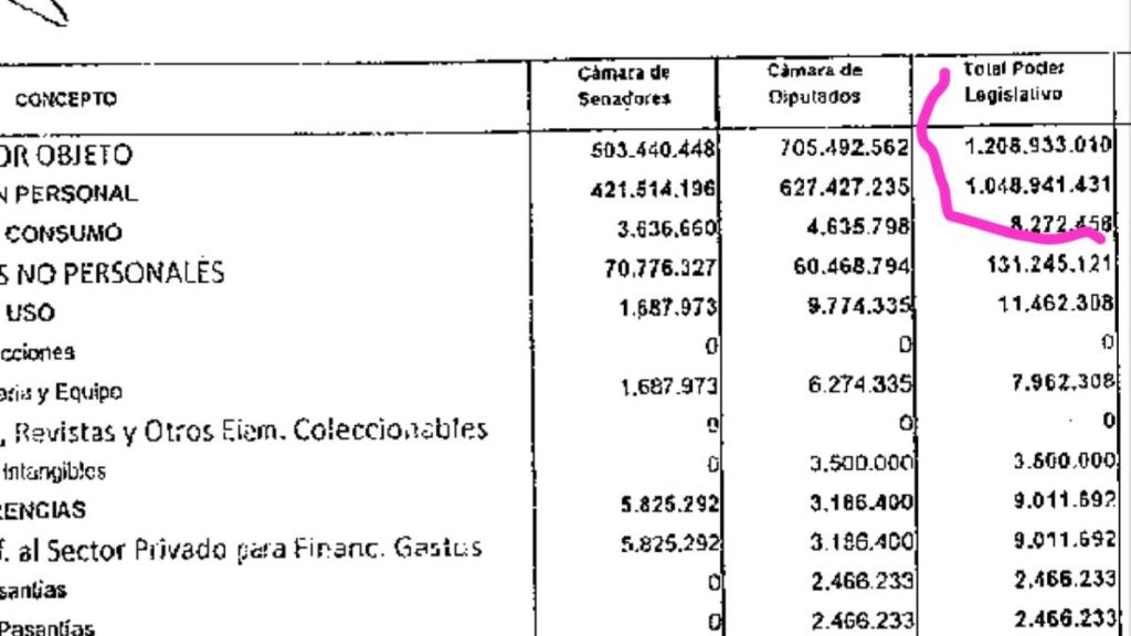 Los números del Poder Legislativo son casi los mismos del entonces Ministerio de Cultura, Turismo y Deportes, que recibió 1.162.021.029.