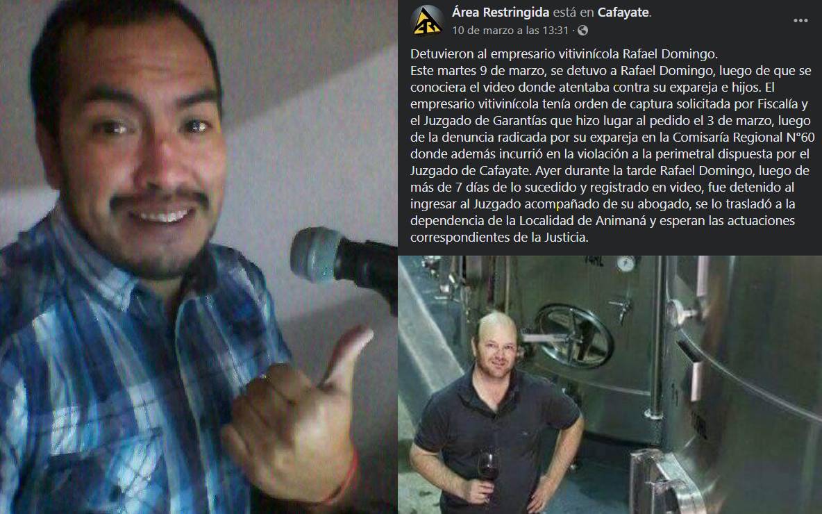 Publicó una nota en Facebook sobre la detención de Rafael Domingo por amenazas de muerte a su expareja. Luego el hermano Gabriel Domingo lo amenazó con “cagarlo a piñas”.