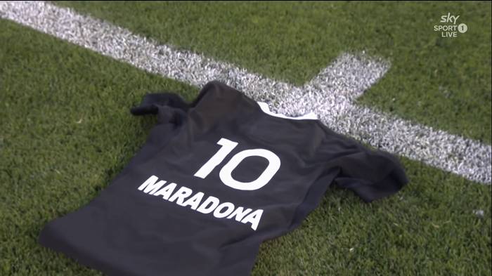 En la previa a su tradicional Haka, Sam Cane, el capitán del equipo de negro, se puso adelante de su formación y caminó hasta el centro de la cancha con algo en la mano. Al llegar a la línea divisoria, el rugbier colocó en el piso una camiseta con la número 10 en la espalda y la palabra Maradona.
