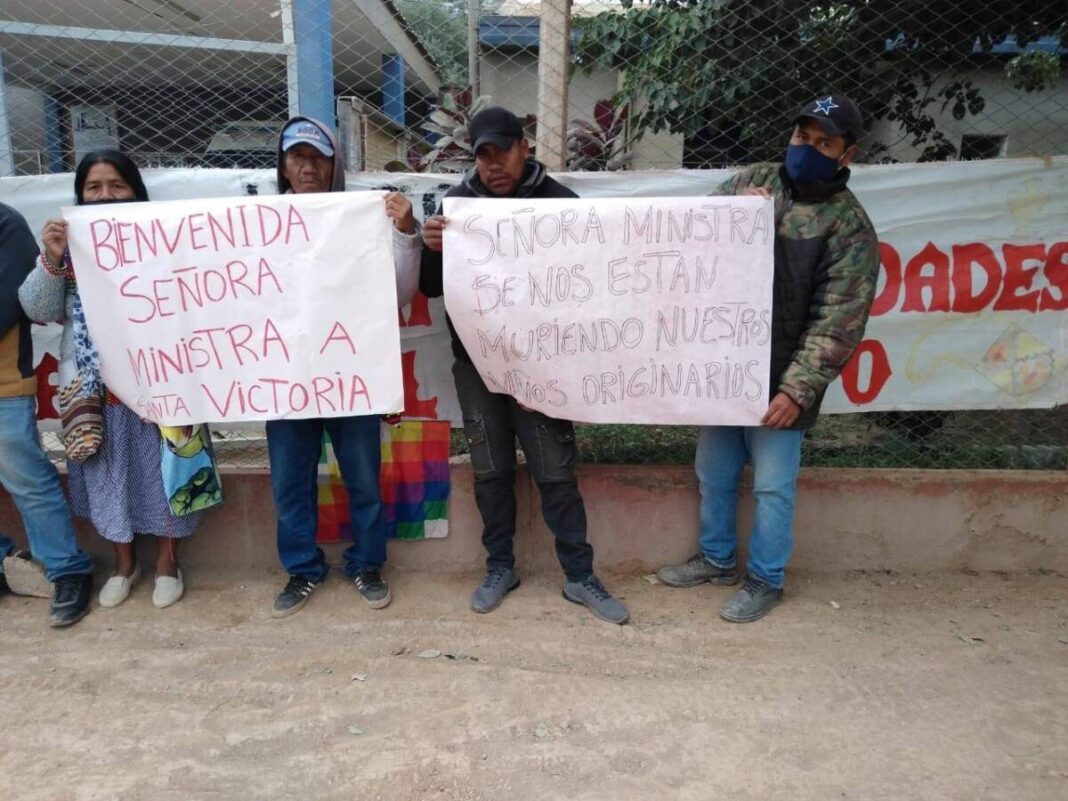 Hoy en horas del mediodía, la ministra de Salud Pública de la Nación, Carla Vizzotti, visitó junto a su par provincial Juan Esteban y otras autoridades, la localidad de Santa Victoria Este. Ahí, en la puerta del hospital fue recibida por un grupo de manifestantes pertenecientes a la UACOP. La esperaron con carteles que hacían referencia a la delicada situación sanitaria en el norte salteño. Uno de ellos da título a esta nota. Además le llevaron una carta pidiendo que se le exija a las autoridades sanitarias salteñas el cumplimiento de lo acordado a fines del año pasado tras la “Marcha Histórica y Mesa de Diálogo Intercultural”.